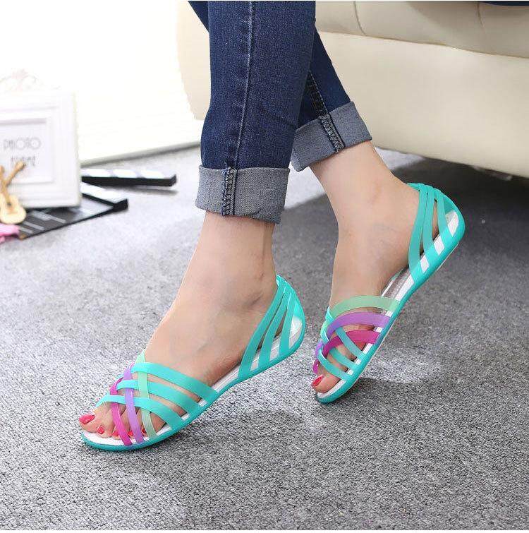 2020 Summer Korean Fashion Women's Shoes, Jelly Beach Loafers, Rainbow Croc Sandals,size 35-40
