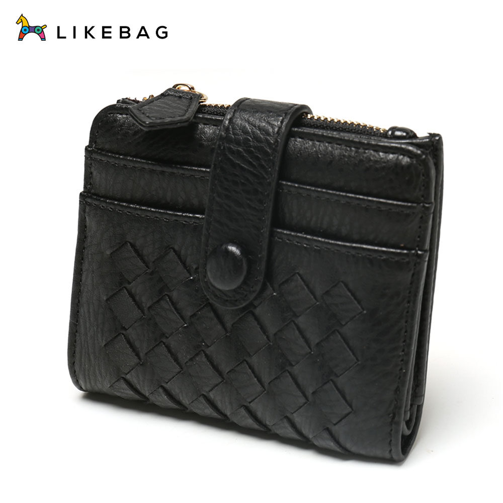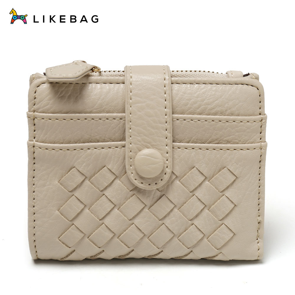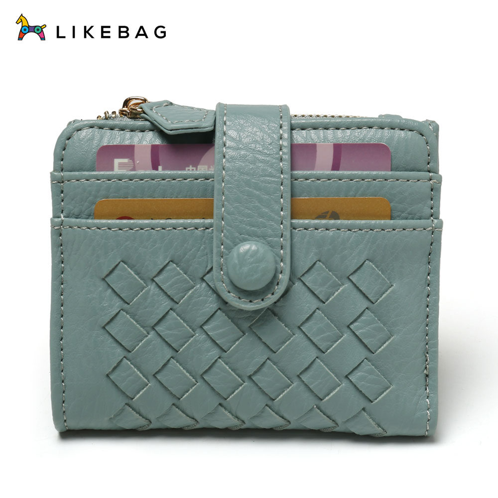 LIKEBAG 2022 Fashion Leather Weave Small Wallet Card Holder