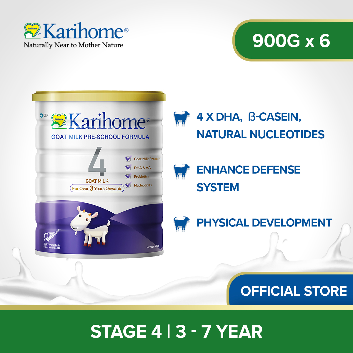 [Bundle of 6] Karihome Goat Milk Pre-School Formula For Stage 4 900g (3yr - 7yr)