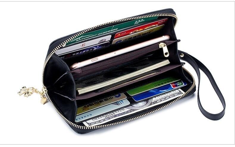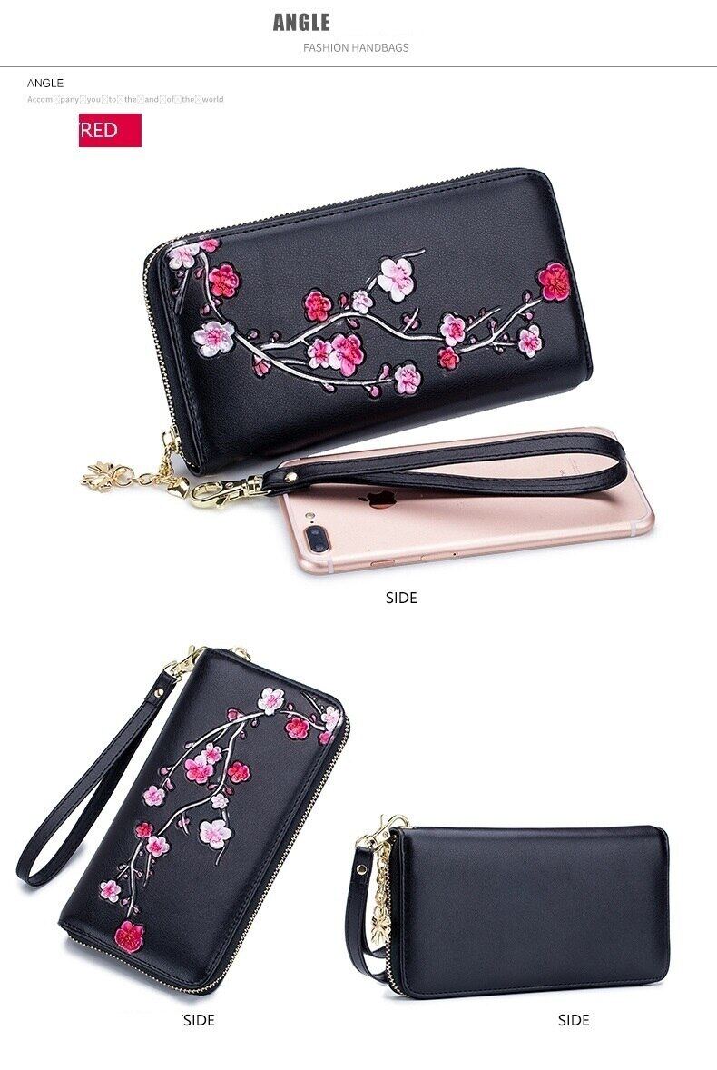 RFID Blocking New Genuine Leather Women Card Holder Clutch Bag 3D Plum Flower Printed Lady Coin Wallet Purse