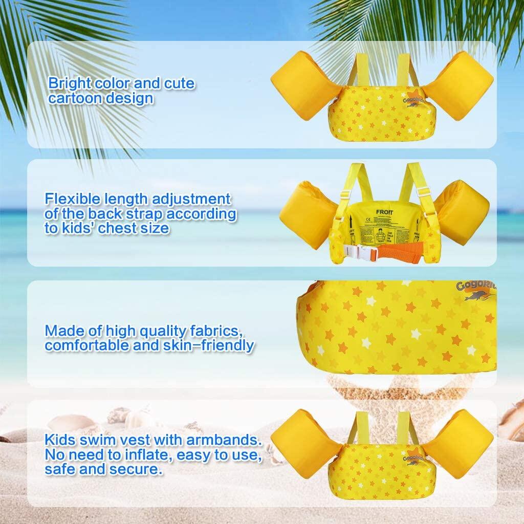 Kids Life Jacket, Gogokids Kids Armbands Children Portable Swim Armbands Inflatable Swim Aid Vest Swimsuit for Kids