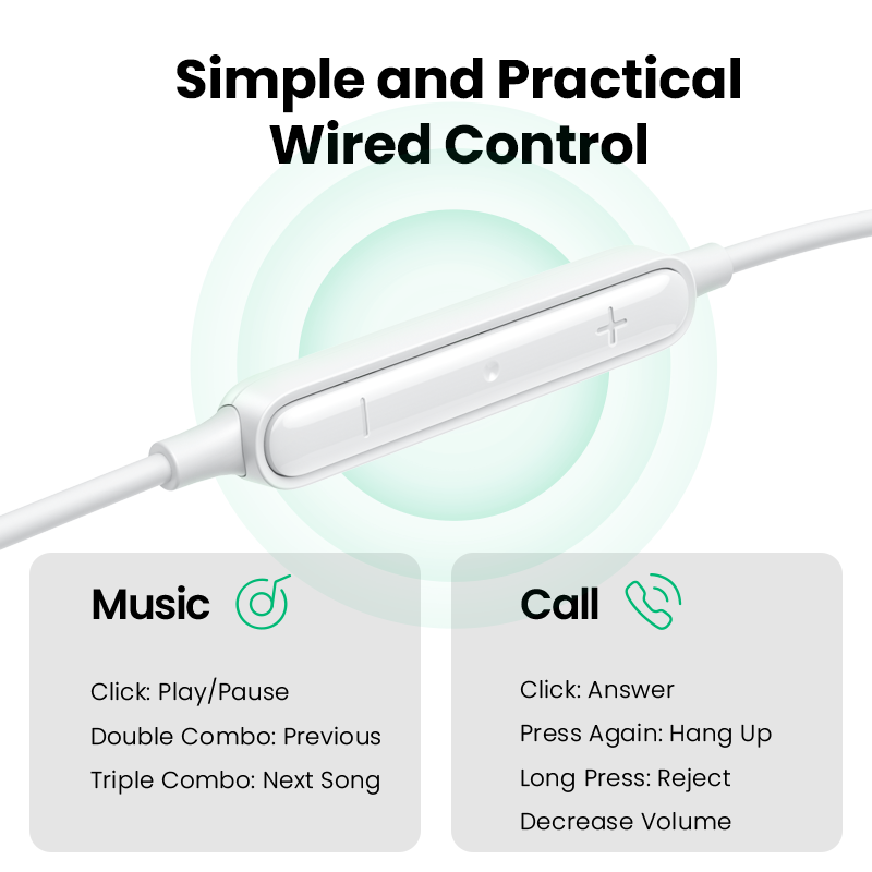 UGREEN Stereo Bass Headphone In-Ear 3.5mm Earphone Type C Lightning Wired Earphones Metal HiFi Stereo Sound Earpiece with MIC for Xiaomi Samsung Huawei iPhone