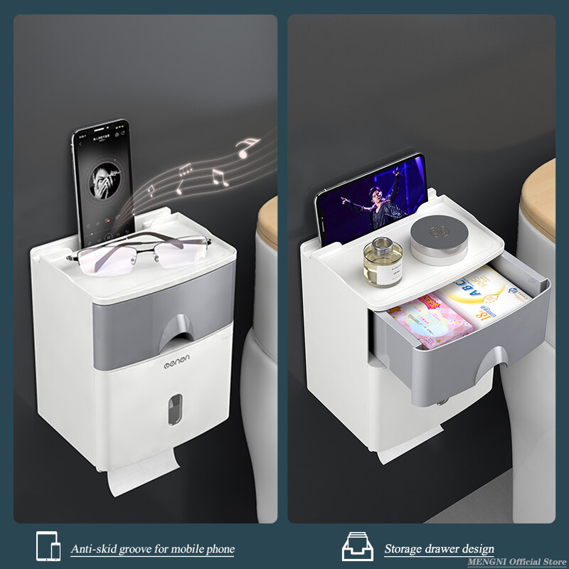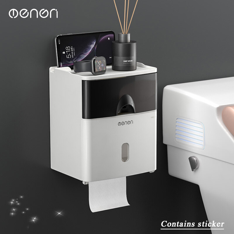 MENGNI High Quality Toilet Paper Holder no drill Waterproof Toilet Tissue Storage Box Wall Mount tissue box Bathroom Accessories Sets