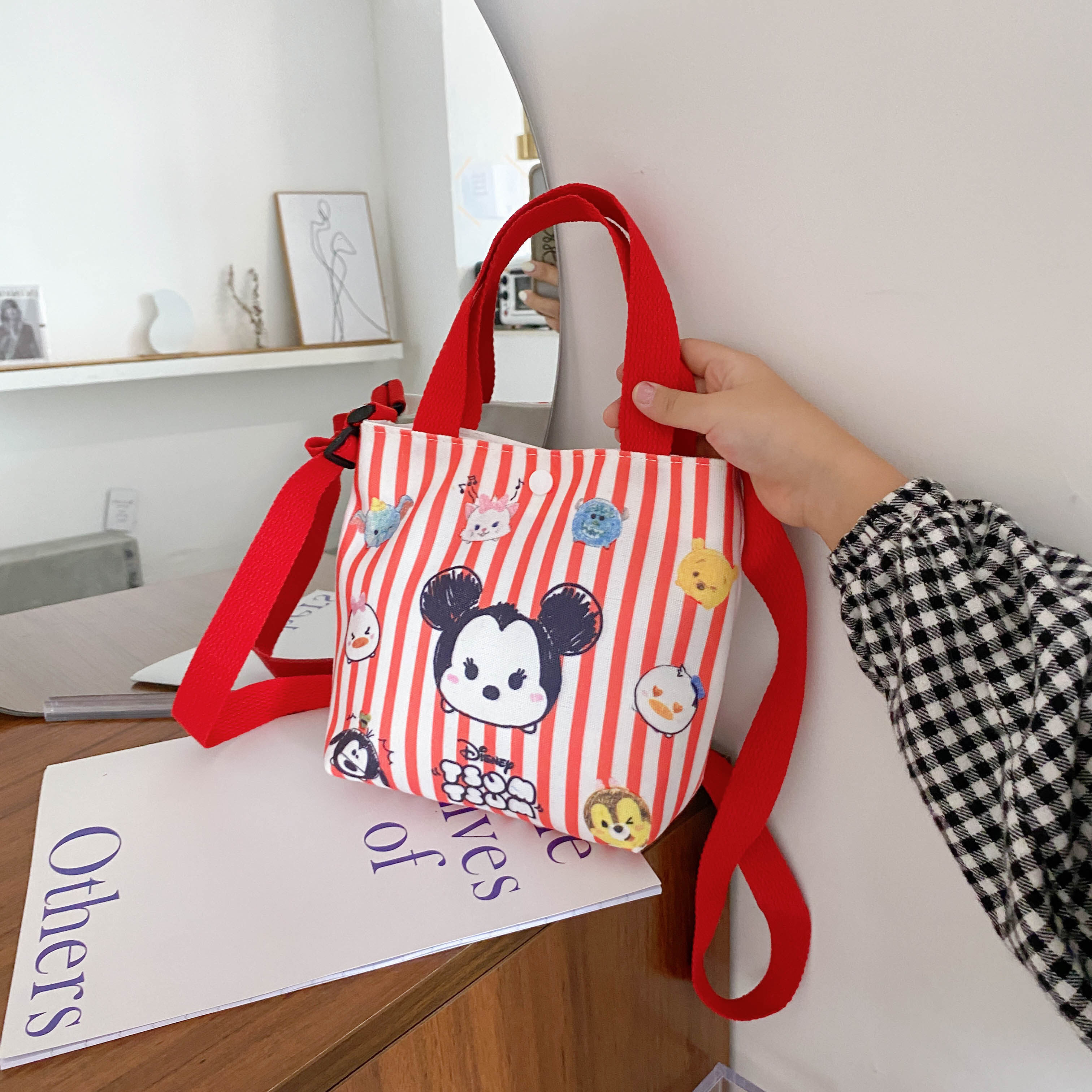 Korean Children's Bag Cartoon Lovely Canvas Bag Ins Fashion Girl Leisure Single Shoulder Bag Mickey Mouse For Kids Girls