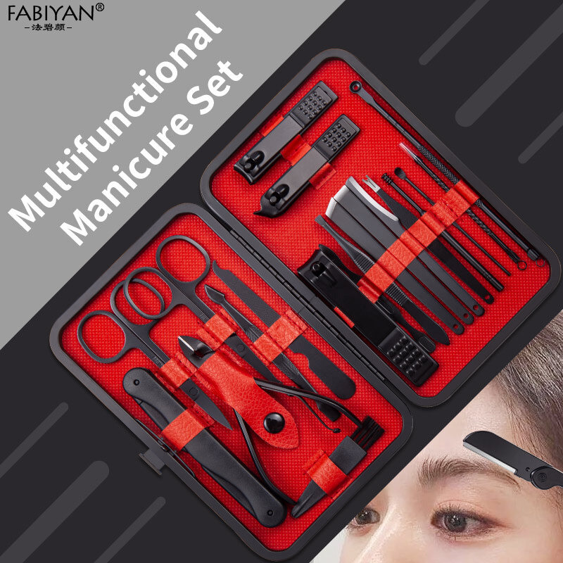 Manicure Kits 18/20/26 Pcs Stainless Nail Art Tools Kits Steel Nail Clipper Cutter Trimmer Nail File Scissor Ear Pick Grooming Kit Manicure Set Pedicure Toe Tools Use For Hand Foot Face