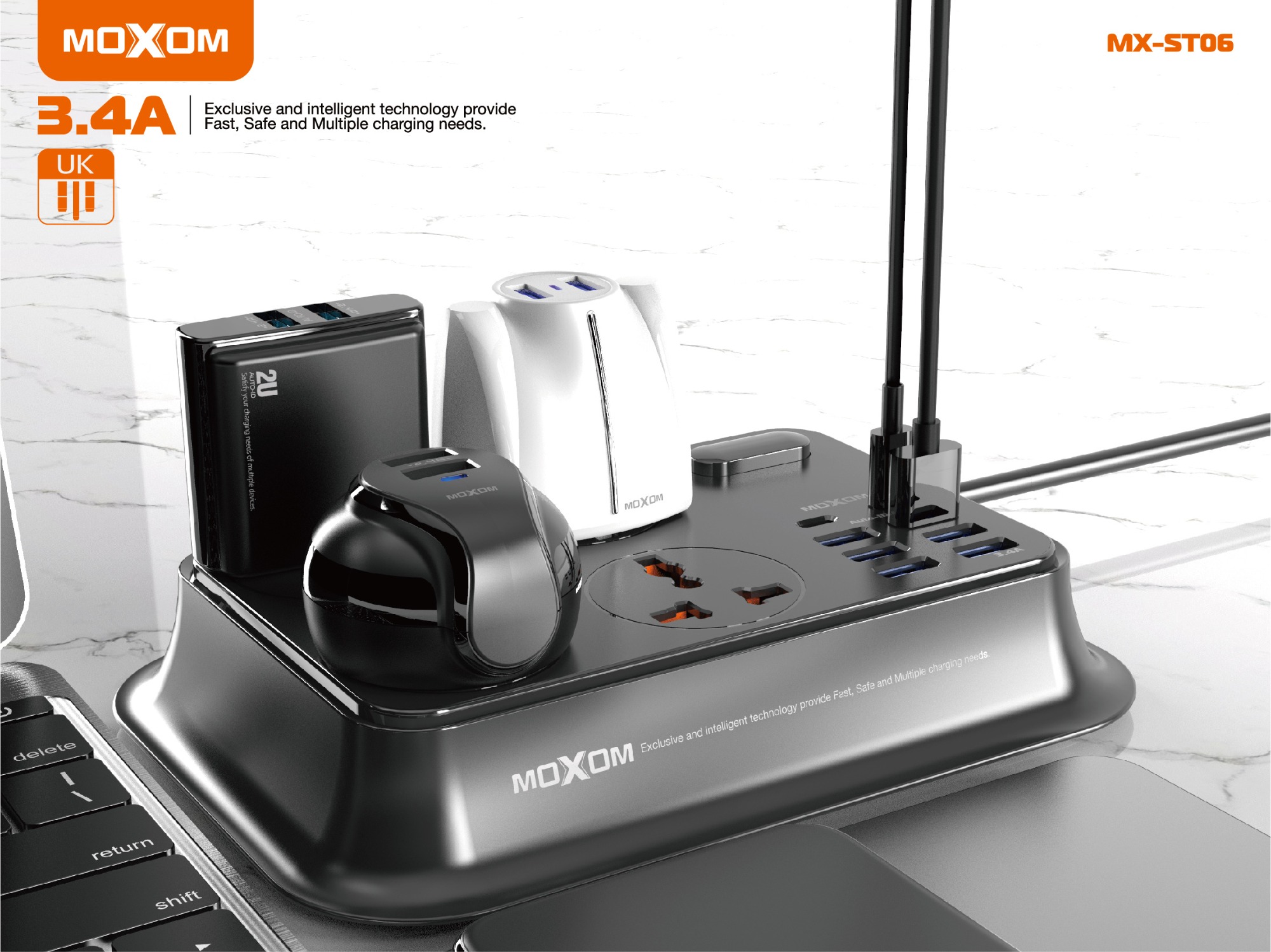 Meet your multiple charging needs in an organized and safe way. Fast charging to charge devices fast and easily.