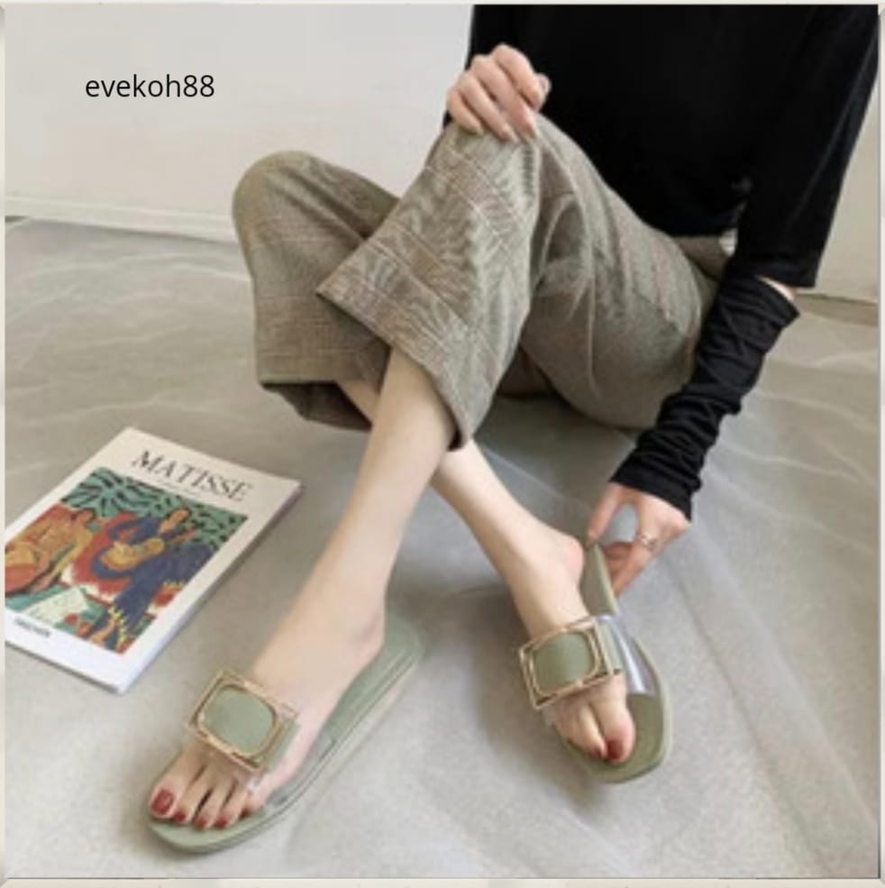 Woman Sandal Slides Square Buckle Summer Daily Fashion Transparent Latest design 2021