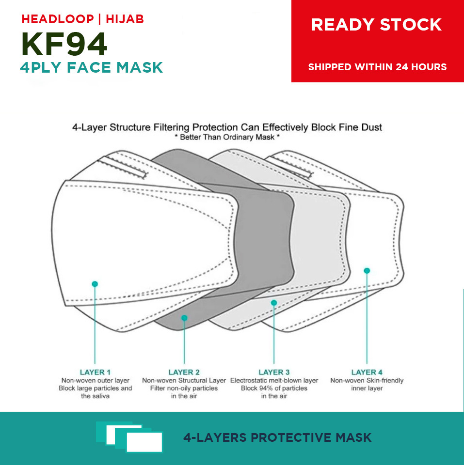 Evetion Kf94 50/100pcs Hijab Headloop FaceMask Korean Adult Mask 3D Design Reusable Masks for Flu Prevention 4-layer Protective Non-woven Fabric Meltblown Cloth High-quality Mask Comfortable to Wear i
