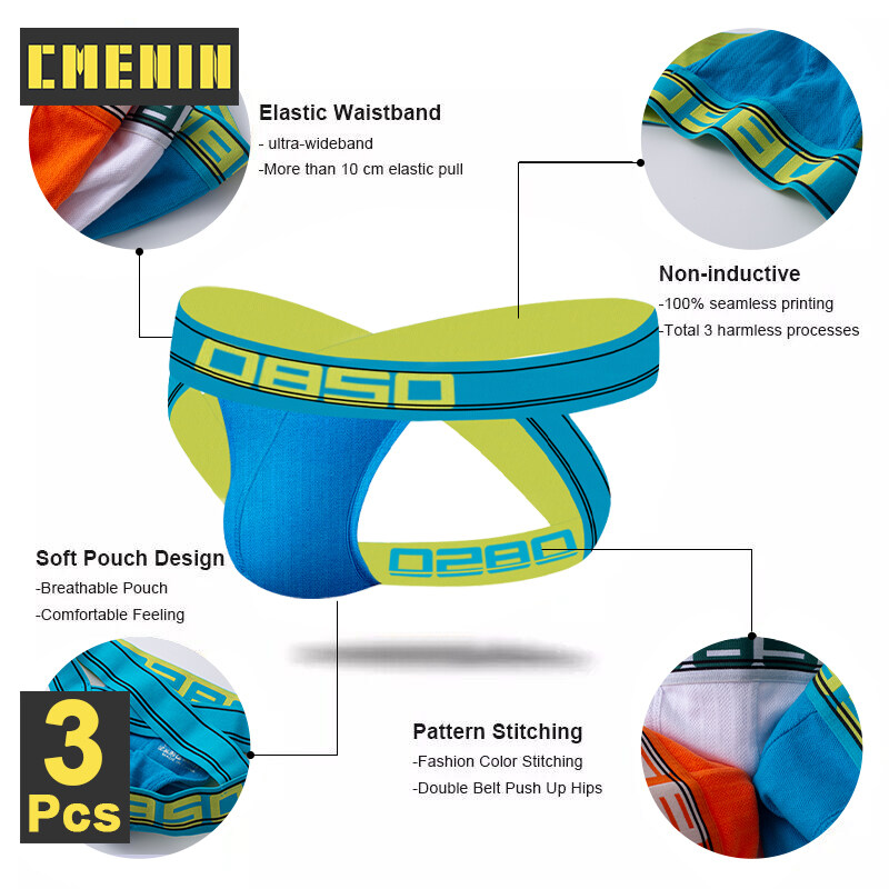 CMENIN BS 3Pcs 2021 New Cotton Sexy Men Underwear Jockstrap Panties Hip Raise Stringi Men's Thongs Underpants Male BS3138