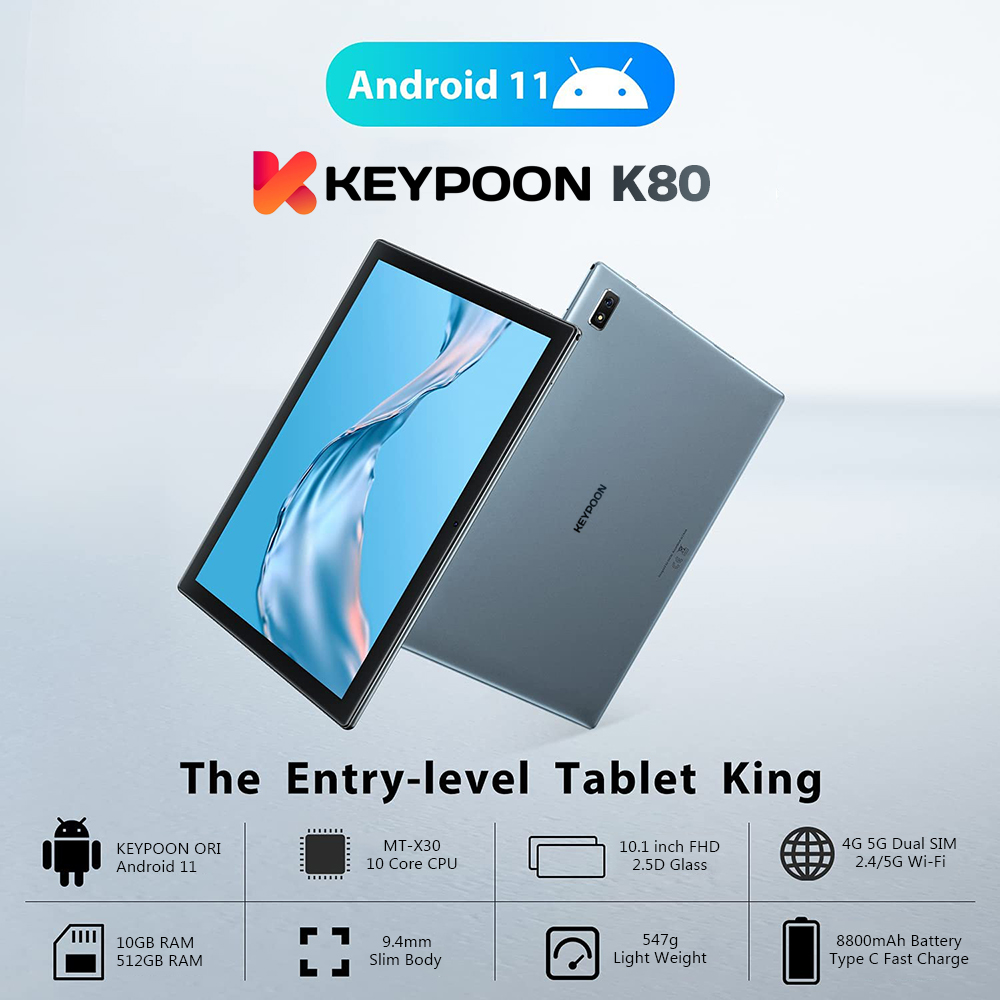 【2022 TOP7】 KEYPOON K80 Tablet PC 10.1 Inches 5G WiFi Android 11 Dual SIM 4G 8800mAh Gaming Online Classroom Meeting for Students 6GB 8GB 10GB RAM 128GB 256GB 512GB ROM