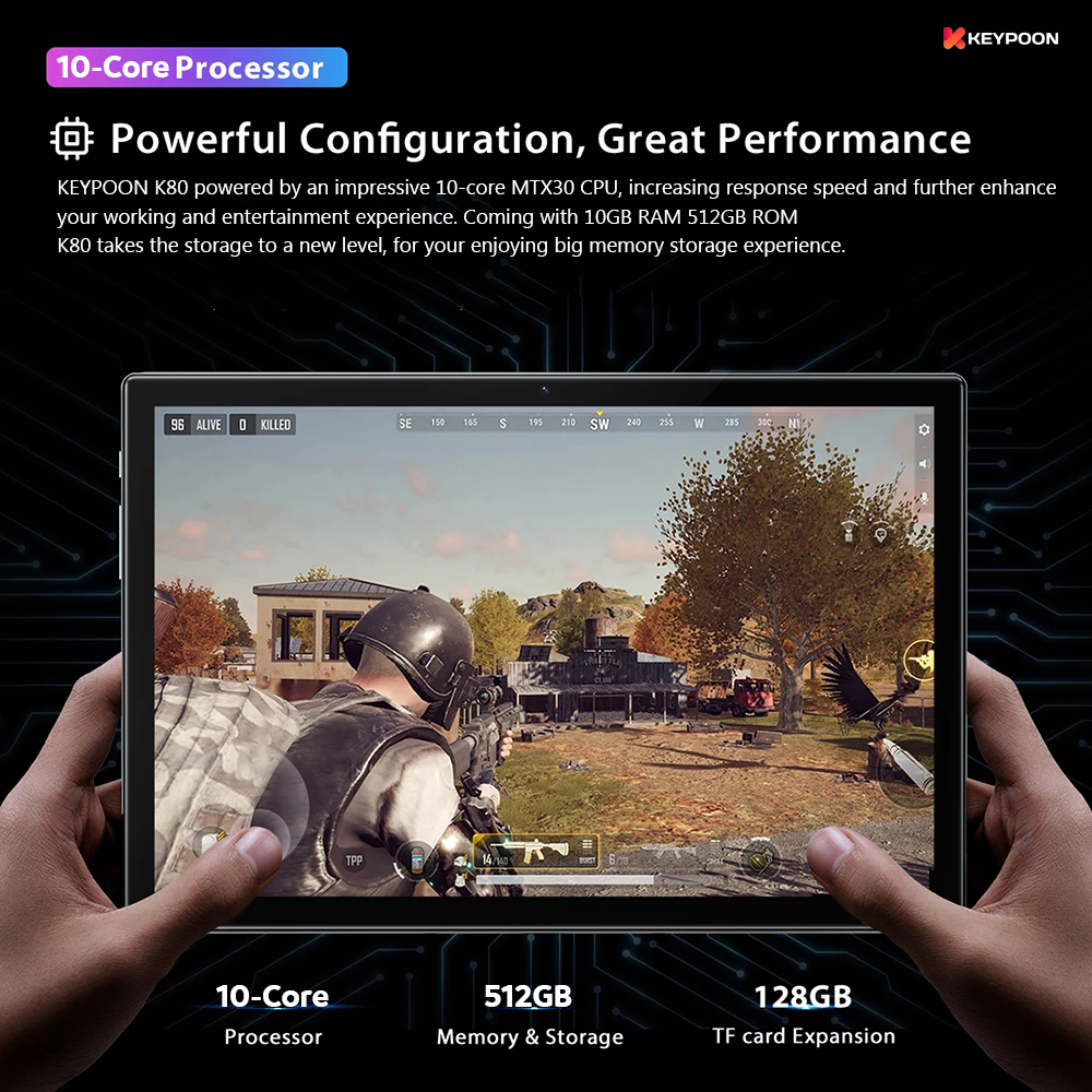 【2022 TOP2】KEYPOON K80 Tablet PC 10.1 Inches Android 11 8800mAh Dual SIM 5G WiFi Gaming Online Classroom Meeting for Students 10GB RAM 128GB 256GB 512GB ROM