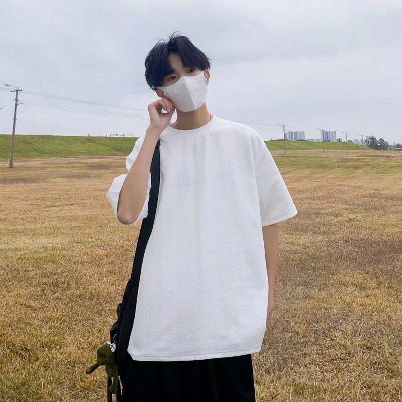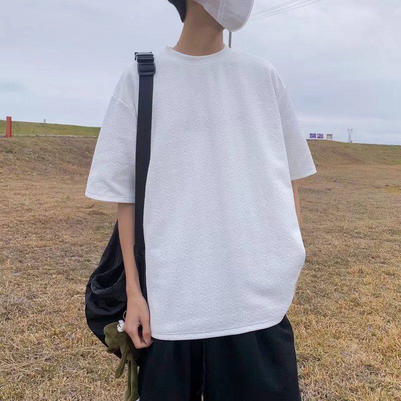 Waffle t shirt Men 2022 New Korean Style Oversize Plain Fashion Tops Loose Casual t-shirt