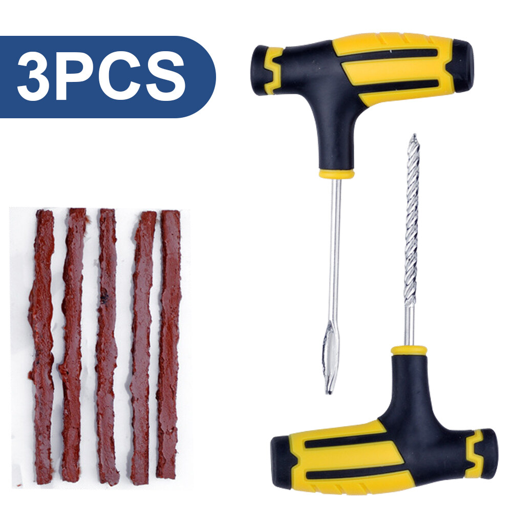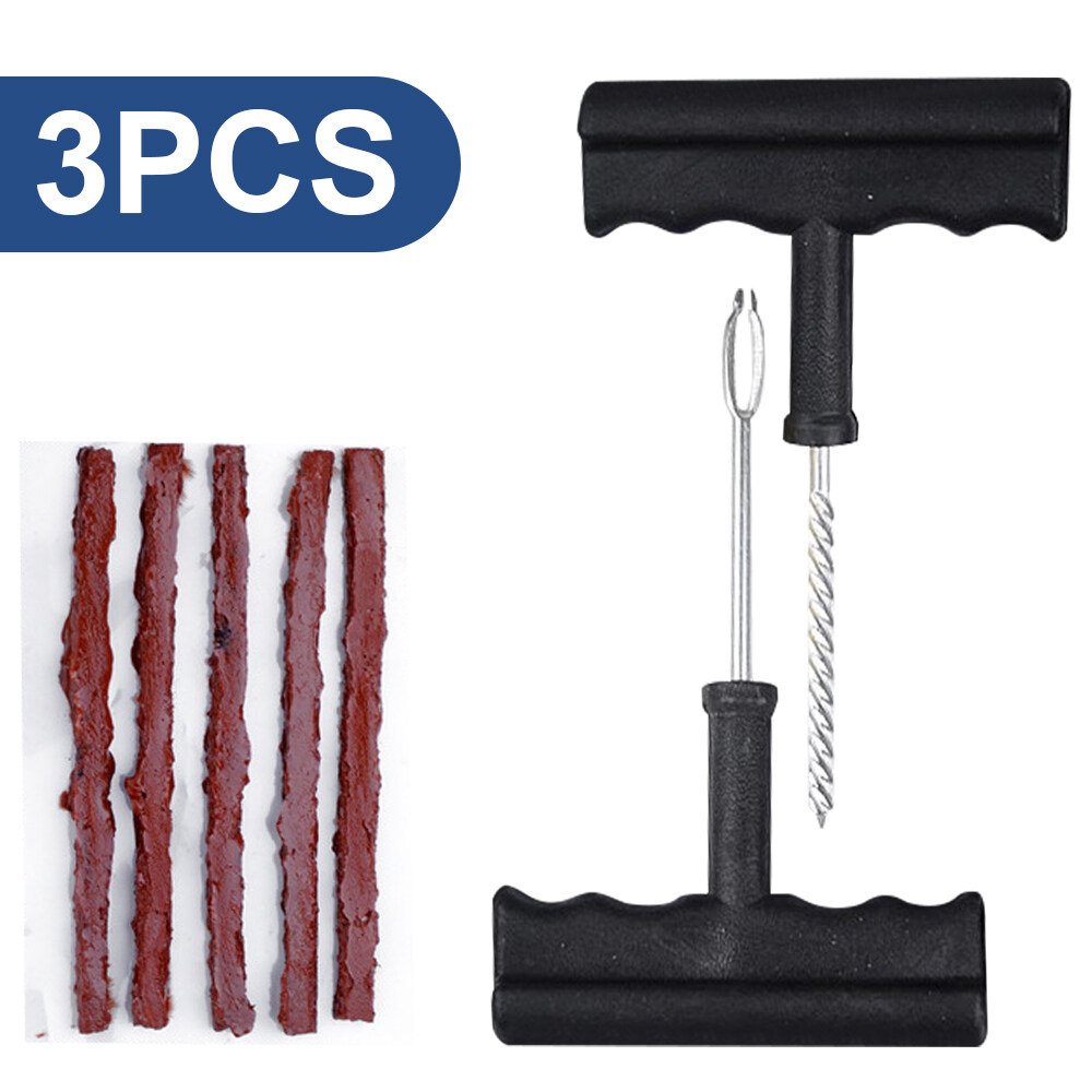 Car Tire Repair Tools Kit with Rubber Strips Tubeless Tyre Puncture Studding Plug Set for Truck Motorcycle