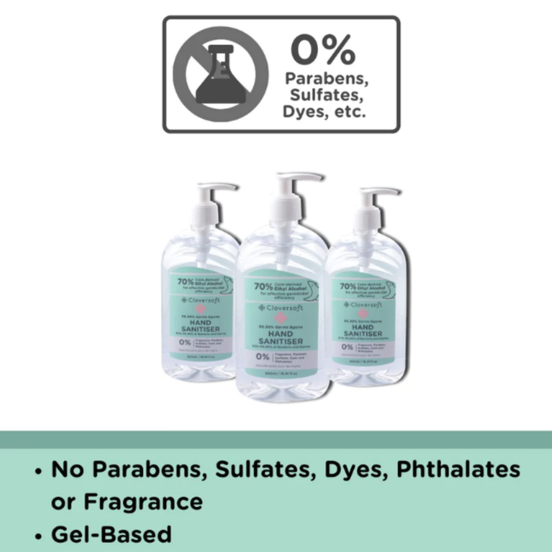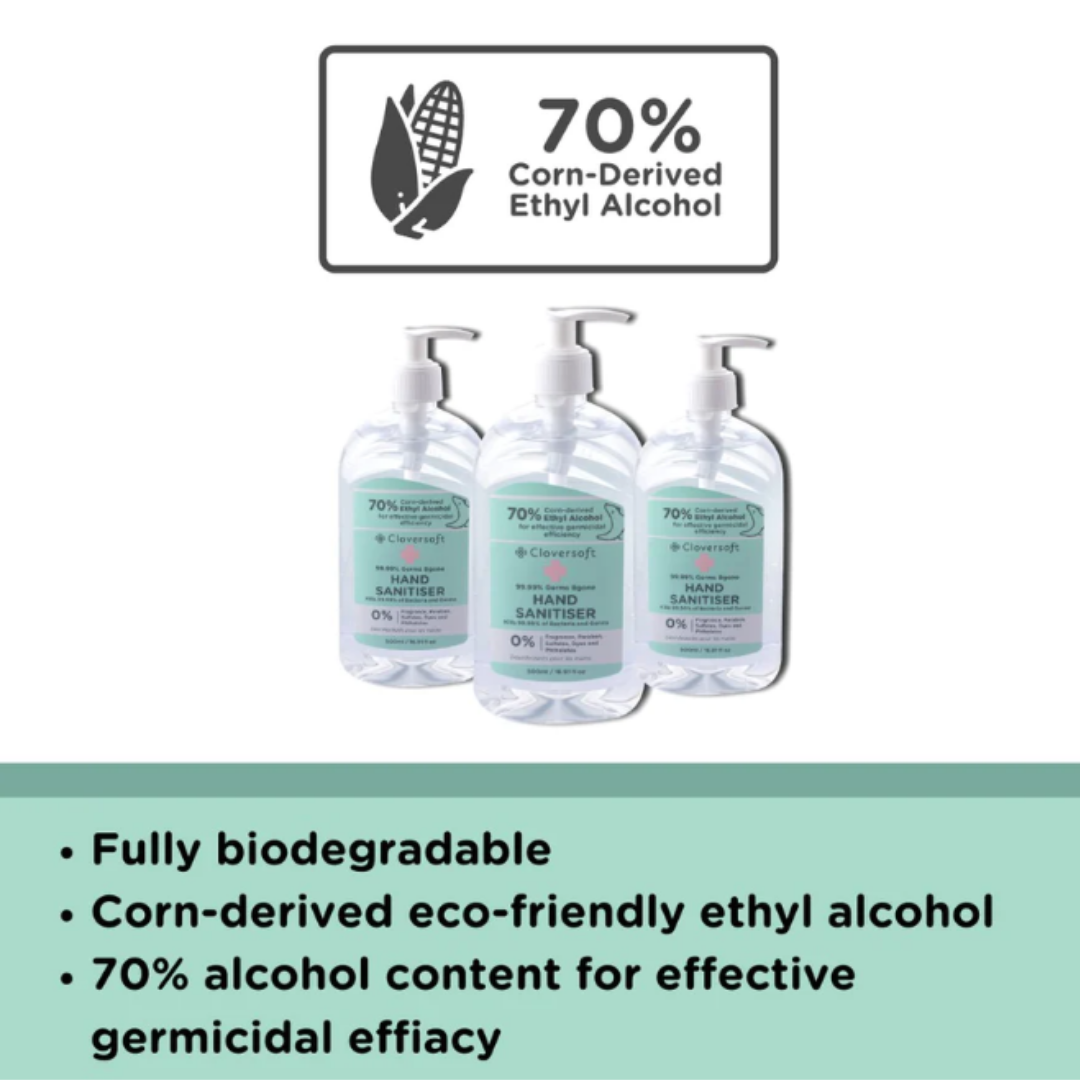 Cloversoft Plant-Based Hand Sanitizer 500ml 99.99% Germs Bgone Gel-based Eco-friendly Corn Derived Alcohol Gentle Refill, Special Promo Carton Deal