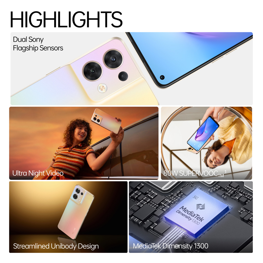 OPPO Reno8 5G / Dual Sony Flagship Sensors / Night Portrait / Mediatek Dimensity 1300 / Ultra Night Video / 80W SUPERVOOC