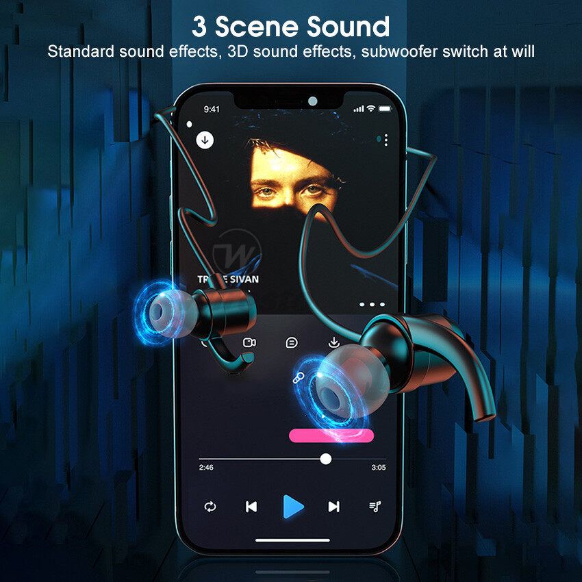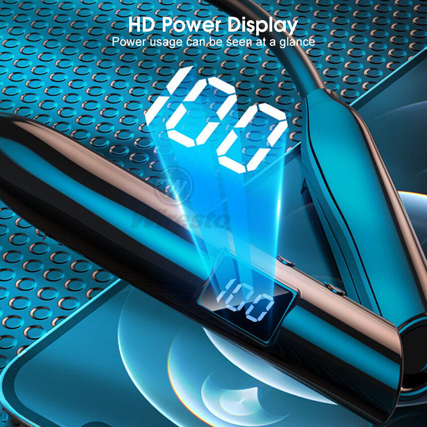 Wiresto TWS Earphone Bluetooth 5.2 In-Ear Headphones Neck Hanging Earbuds IPX5 Waterproof Sport Earphone HIFI Stereo Headset LED Power Display Earbuds Support TF Card Remote Photo With Flashlight