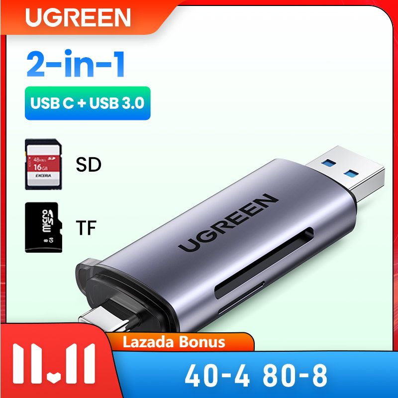 UGREEN 2 in 1 Card Reader USB 3.0 for SASMUNG S20+/S10+/S9/Note 10/Huawei P40/Dell/Lenovo/ThinkPad USB 3.0 SD TF OTG Type C Smart Memory Card Adapter for Laptop USB 3.0 Cardreader SD Card Reader Read