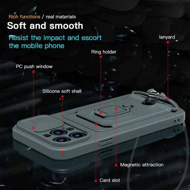 For Apple iPhone 15 14 13 11 12 Pro Max Plus mini Phone Case, Crossbody Necklace Strap Lanyard Magnetic Ring Card Slots Holder Cover