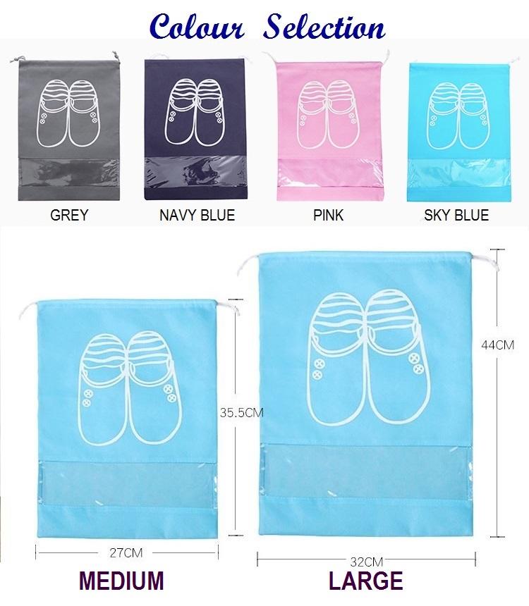 Portable Compact Travel Shoe Bag with Clear Window for Easy Identification. 4 Colours, 2 Sizes Available. Local Seller Fast Delivery