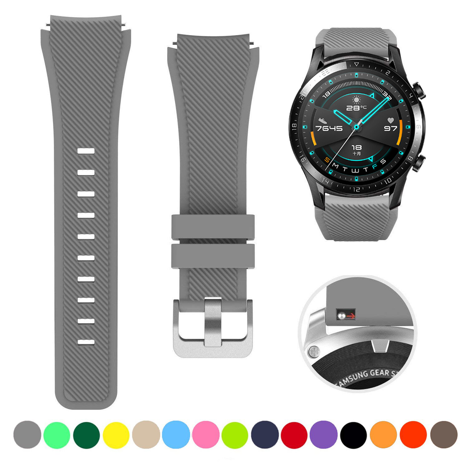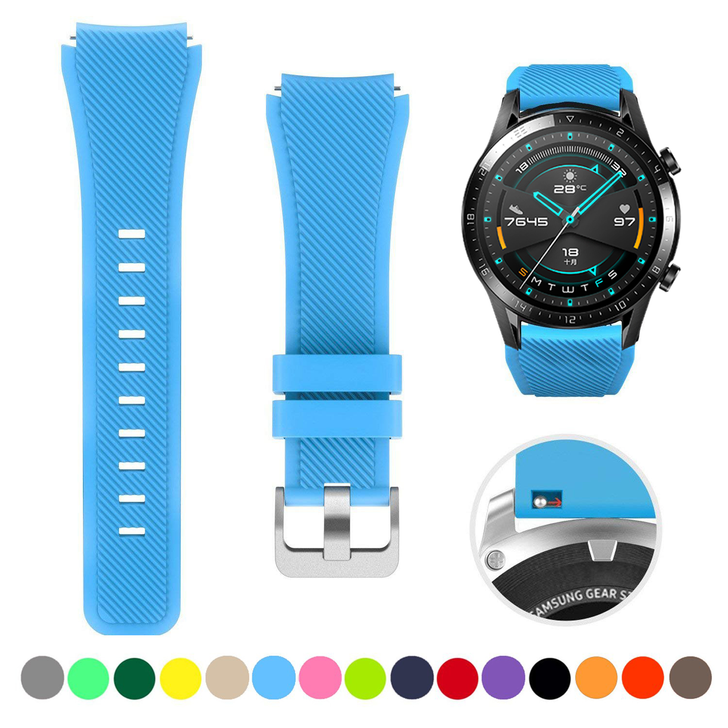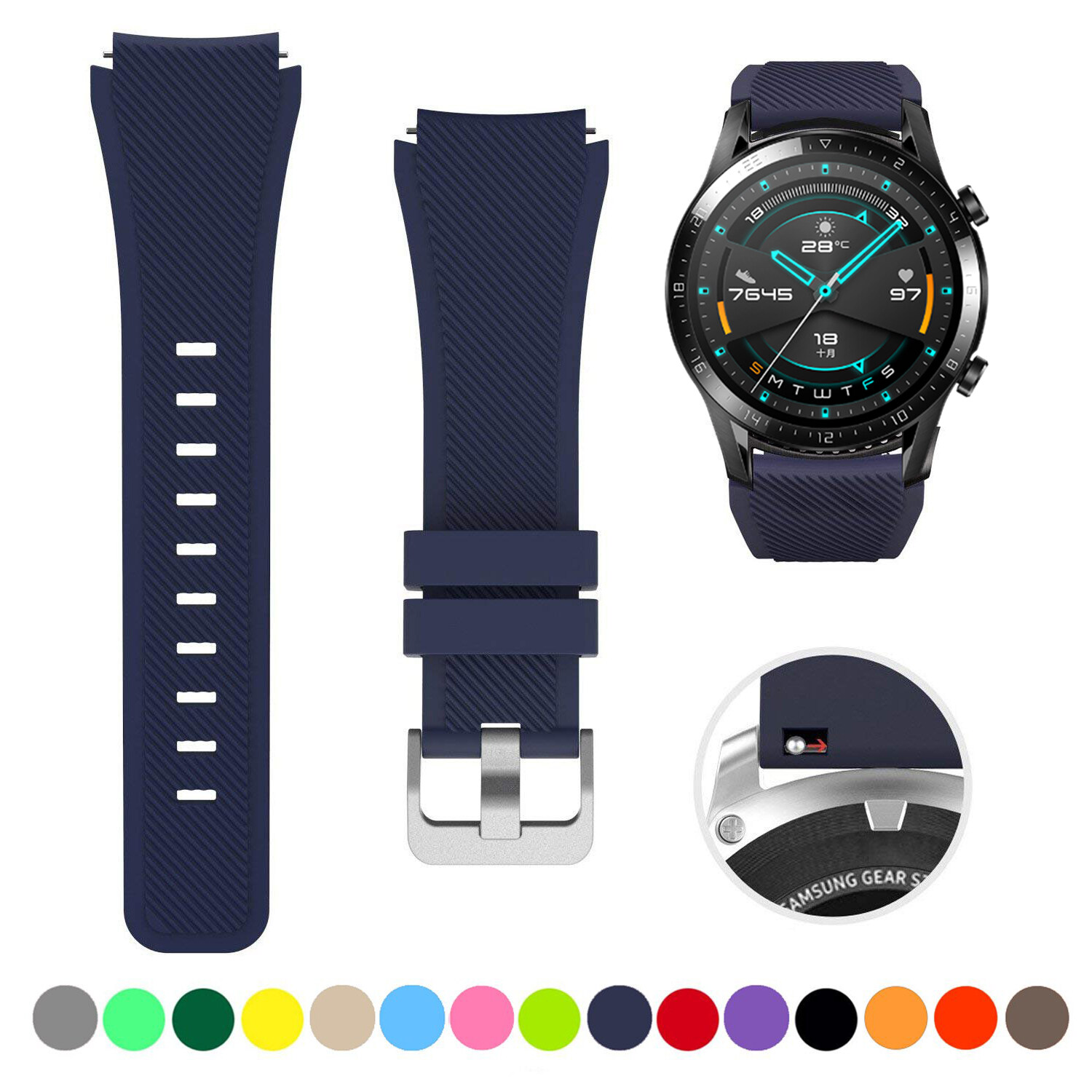 Zenia 22mm Width Replacement Classic Silicone Strap Watchband Wrist Band Watch Strap for Huawei Watch GT3/GT/GT 2/GT2/GT 2E/GT2 E/GT2E 46mm Runner Sport/Active/Classic/Elite Watch 2 3 Pro Honor GS/Ma