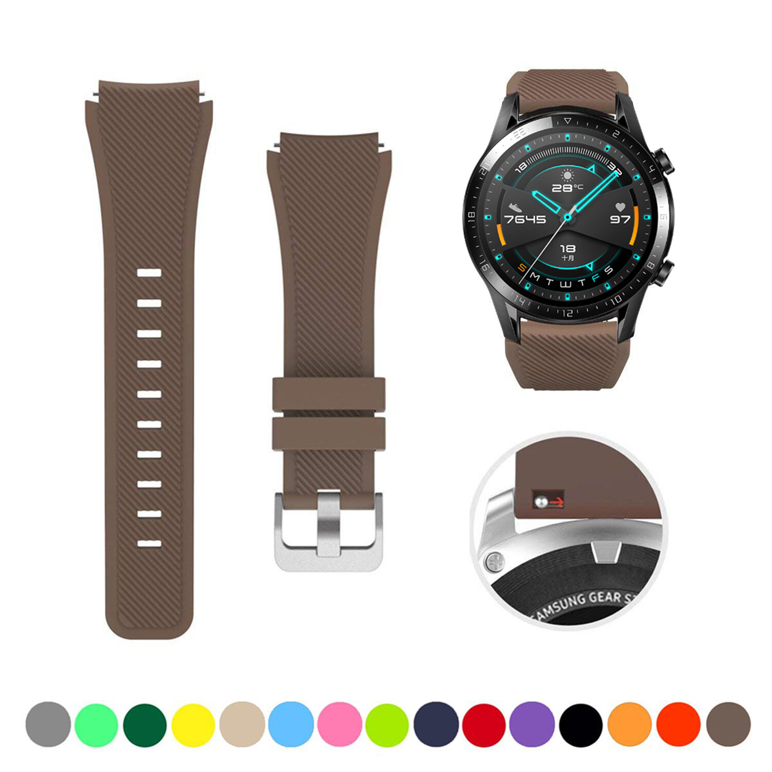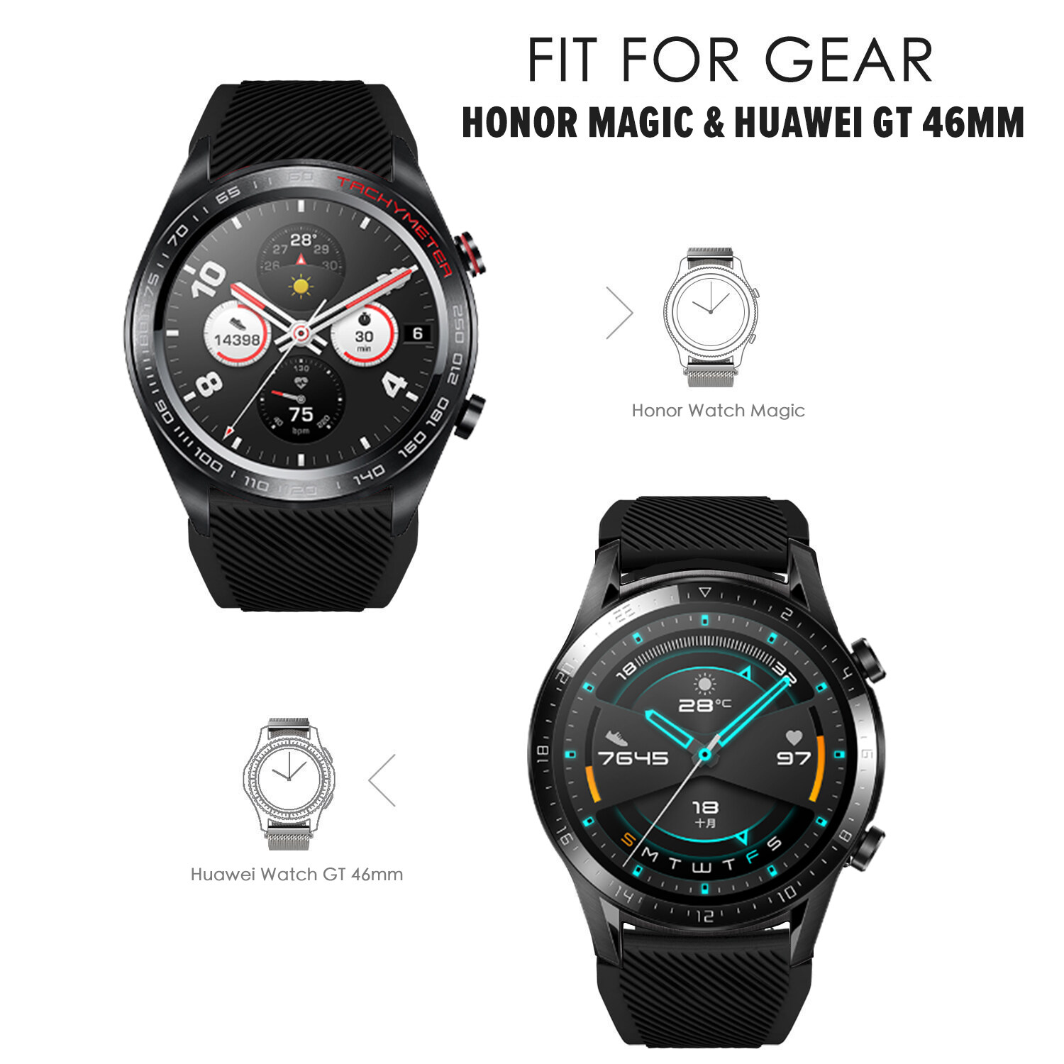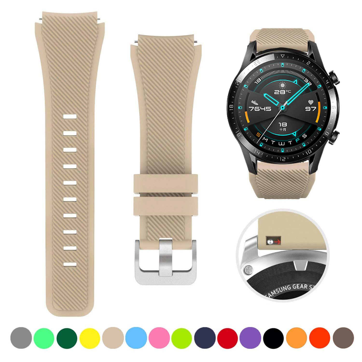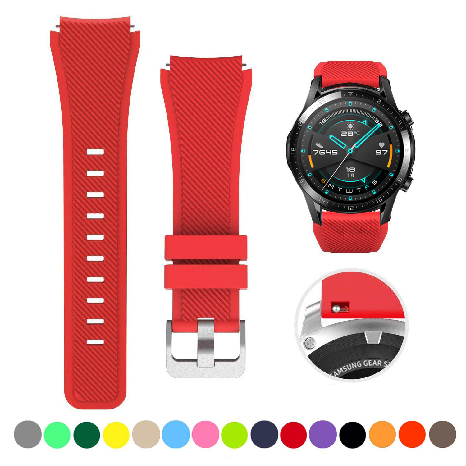 Zenia 22mm Width Replacement Classic Silicone Strap Watchband Wrist Band Watch Strap for Huawei Watch GT3/GT/GT 2/GT2/GT 2E/GT2 E/GT2E 46mm Runner Sport/Active/Classic/Elite Watch 2 3 Pro Honor GS/Ma