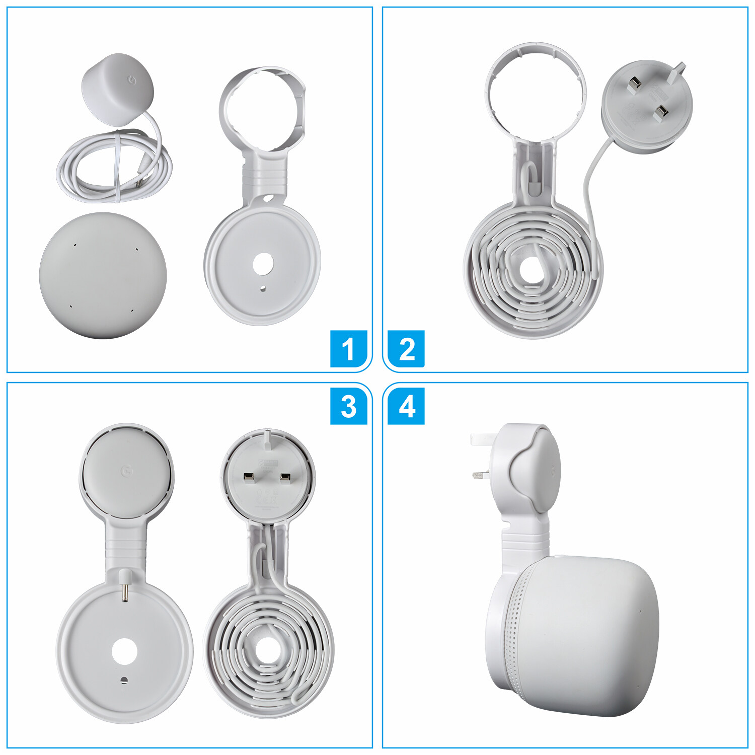 • CORD MANAGEMENT and STURDY --- The cable can be wrapped through the reels which is back of the google nest point wall mount where is specially designed for the Google nest wifi Point to hide the messy wires . From then on , say goodbye to the meesy wires .