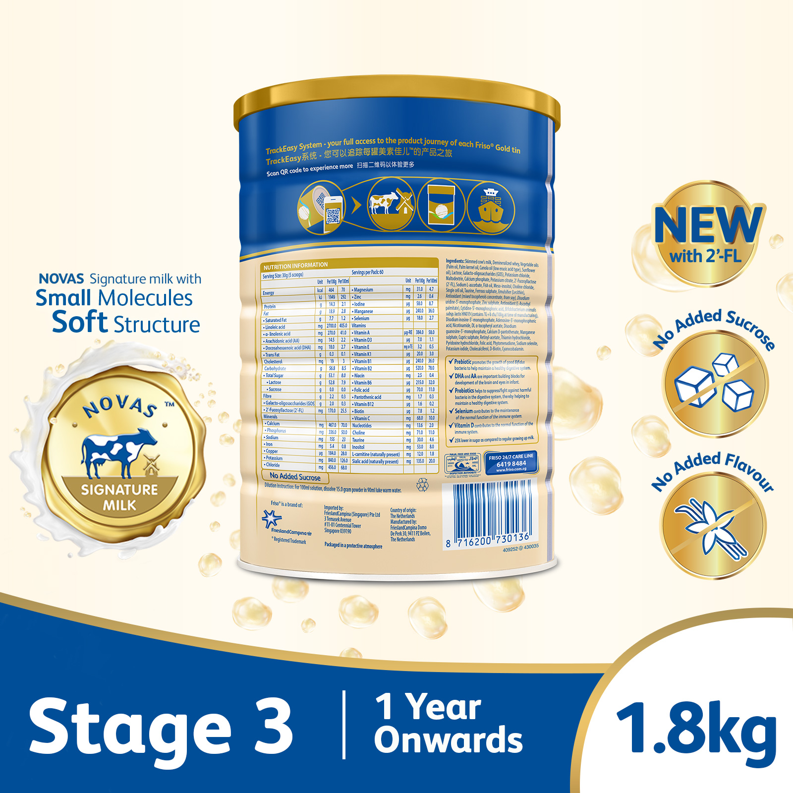 Made from high-quality NOVAS Signature Milk that is sourced directly from our own farms in the Netherlands, crafted by our Holland Dairy Science expertise.