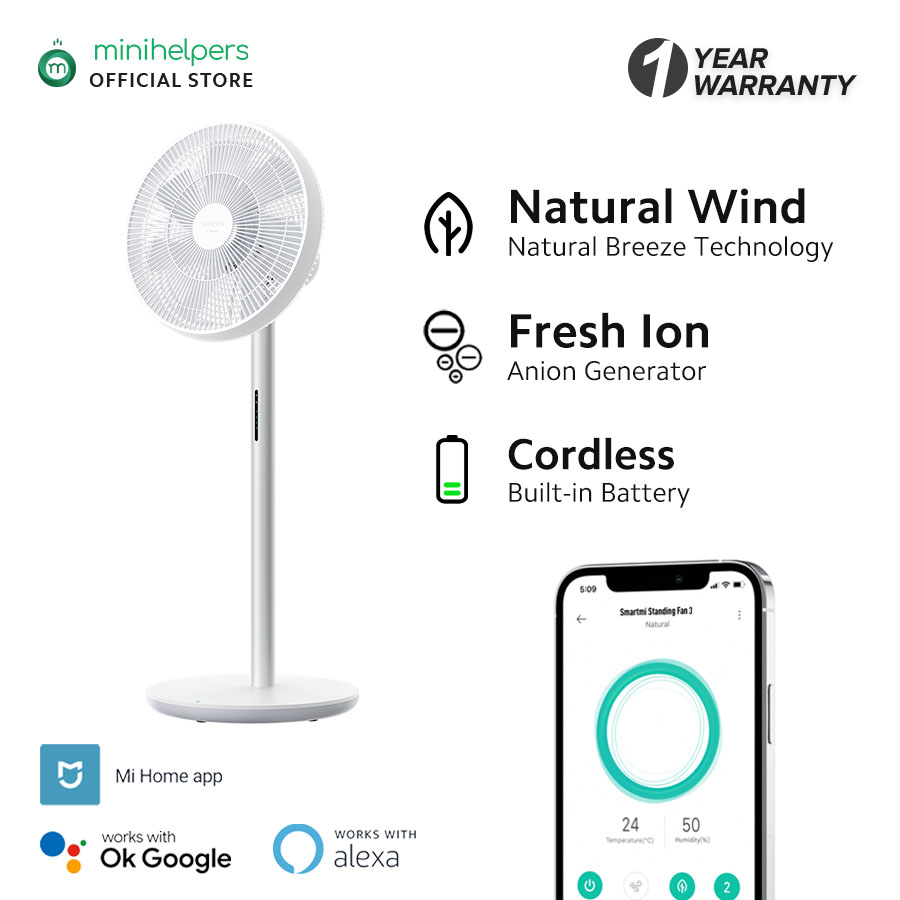 Xiaomi Smartmi Standing Fan 3 with built-in battery, remote control, LED battery indicator, Mijia APP Controls and Oscillation Mode, Pedestal Standing Fan