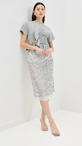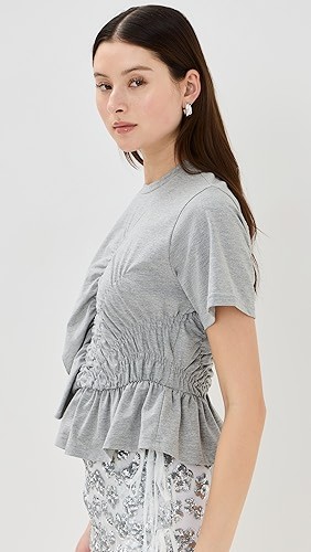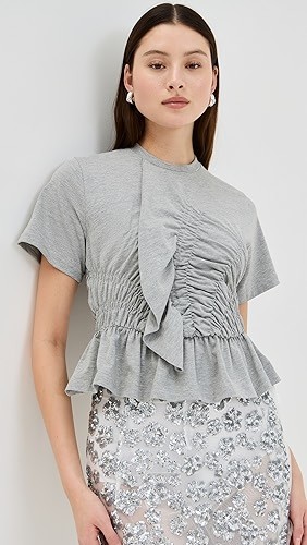 Ruching at waist with ruffle trim