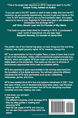 In this book, you will learn: What are NFTs The different industries which leverage NFTs Step-by-step guides in creating and acquiring NFTs Real-life use cases of NFTs and how you too can earn from opportunities within the space
