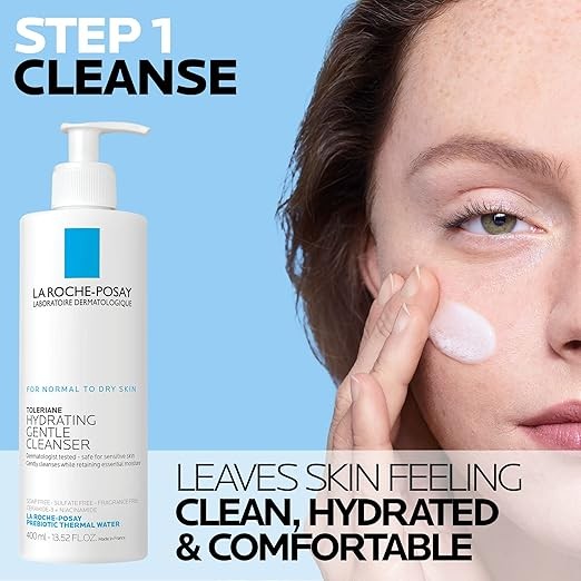 La Roche-Posay Toleriane Hydrating Gentle Face Cleanser | Hydrating Facial Cleanser With Niacinamide + Ceramides | Daily Face Wash For Dry Skin To Normal Skin | Sensitive Skin Tested | Fragrance Free