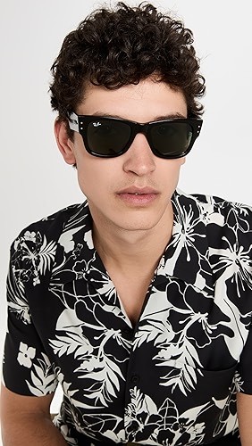 A fresh take on a Ray-Ban classic, these Mega Wayfarer sunglasses arer offered in shiny black acetate, and feature wider arms than the original.